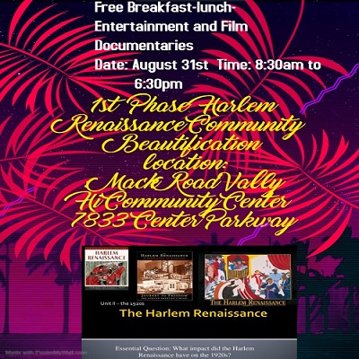 - Harlem Renaissance Community Beautification Project – Phase 1 Â – Saturday 8/31/19 (8:30am – 6pm)